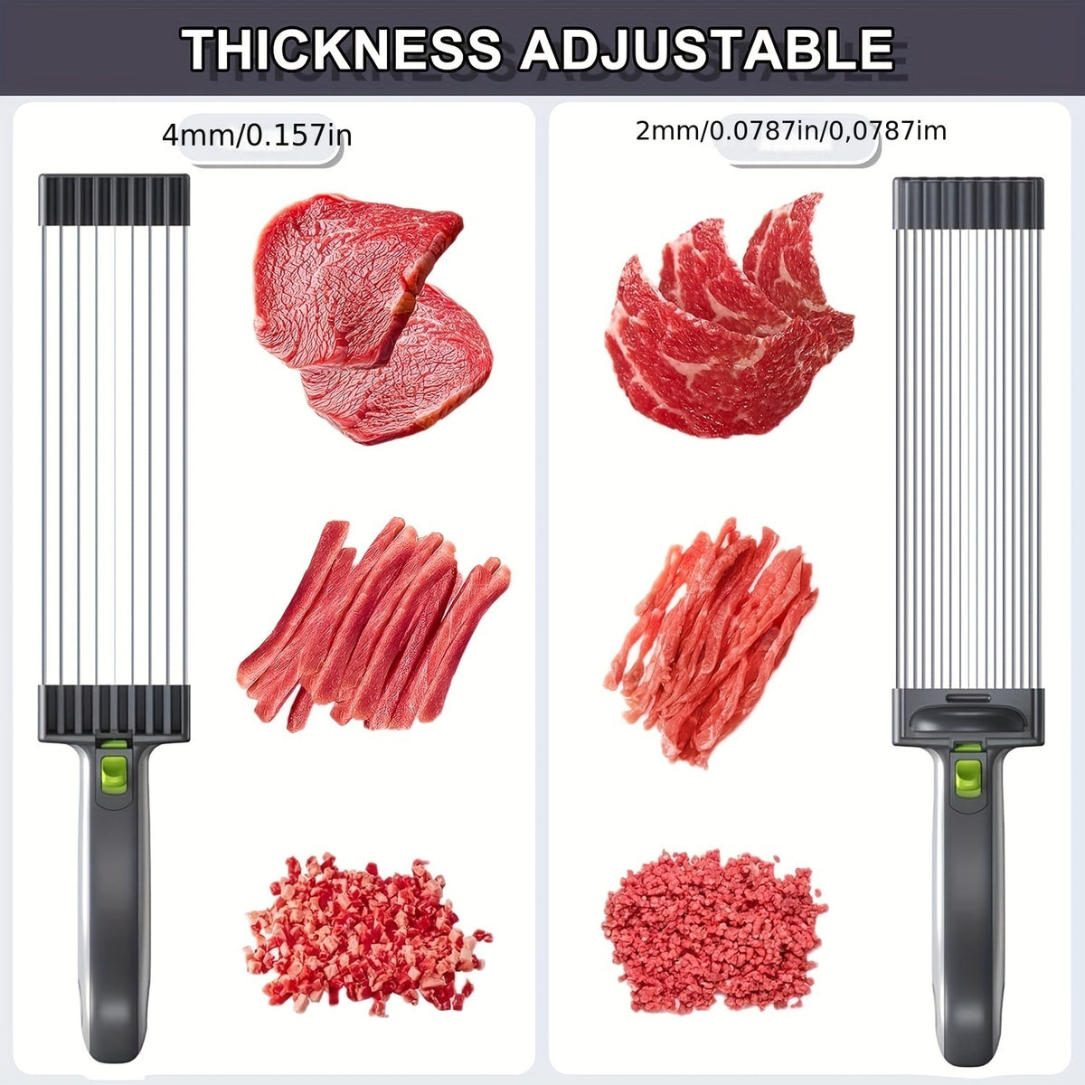 • Multi-Purpose Use: Easily slices through beef, poultry, and vegetables with precision.