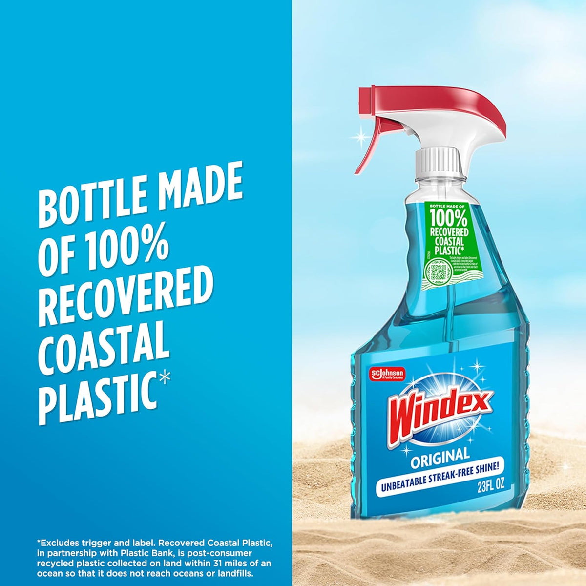Trusted by generations for an unbeatable streak-free shine*, Windex Original Glass Cleaner is a great solution for lightening and brightening your home. Relax and recharge by letting in all the feel-good power of natural light with Windex unbeatable streak-free window cleaner. It starts working on smudges, dirt, fingerprints and other messes even before you wipe. Windex is committed to bottles made from 100% recovered coastal plastic**. This glass cleaner works great on windows, mirrors, glass and more. Enjoy 100% of the goodness that natural light brings with Windex Original Glass Cleaner. Light is Life. Let it all in. *Based on Windex Original lab testing against leading competitor glass cleaners per Nielsen Scantrack US 52 weeks ended 3/29/19. **Recovered Coastal Plastic, in partnership with Plastic Bank, is post-consumer recycled plastic collected on land within 31 miles of an ocean so that it does not reach oceans or landfills.