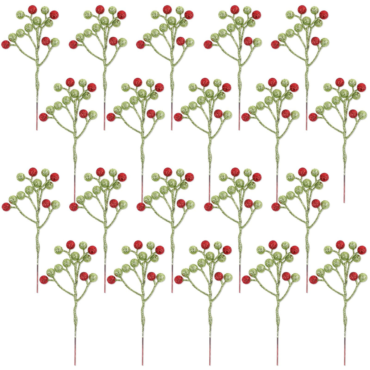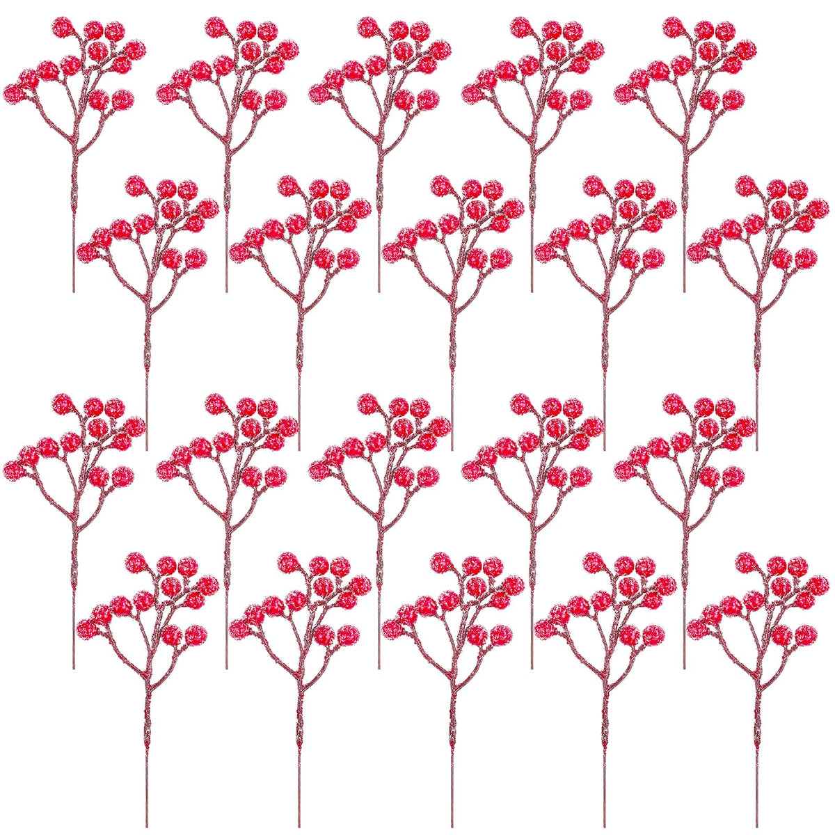 Quantity: Each package 20 artificial red berries Christmas picks sprigs twigs with 12 red berries each for you to decorations Christmas tree at holiday or make art craft