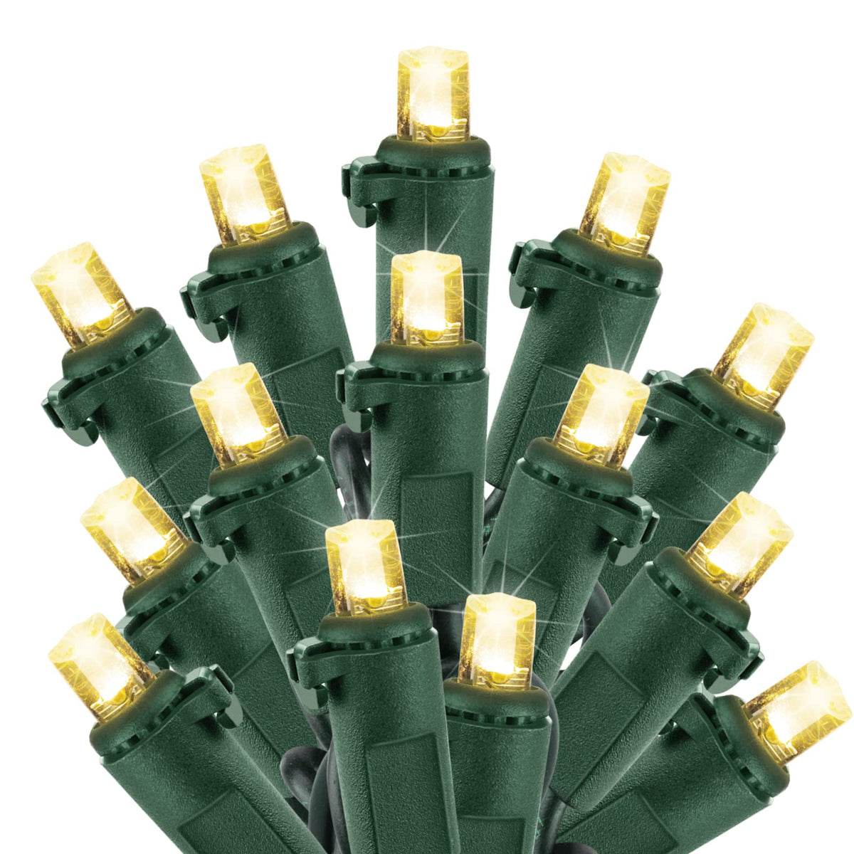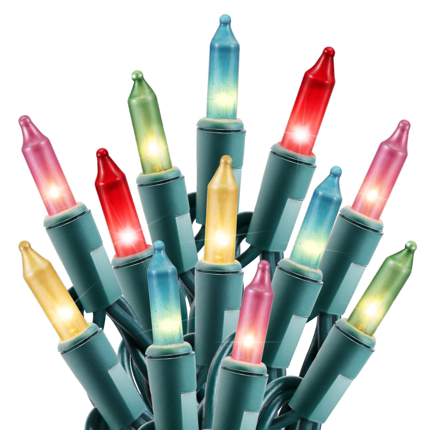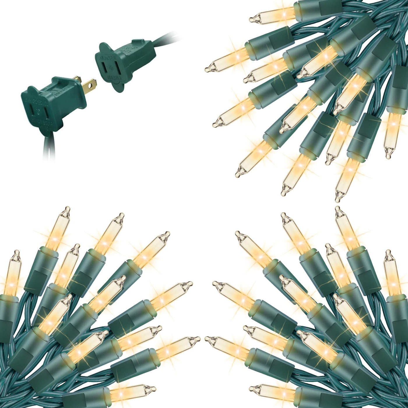 Creative Mini Christmas Lights Set: This Christmas light on green wire set includes 100 transparent Incandescent mini-lights, 26.5 feet green wires, and each bulb is 3 inches apart, 18 inches lead wire, 3 inches end connector. It can be connected end-to-end to meet your decoration needs, up to 5 creative light strings