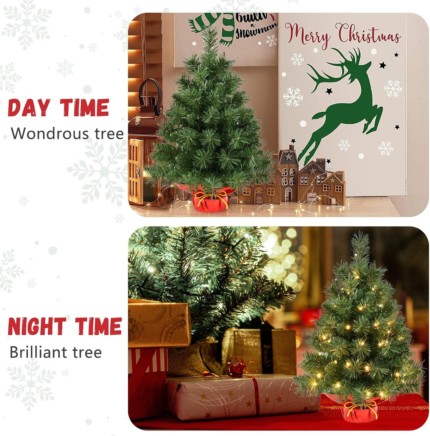 LASTING DURABILITY, BUILT-IN LIGHTING: This 2ft Christmas Tree have built to endure many holidays with its red burlap base and 50 battery-operated warm white LED lights with integrated 6 hours On/18 hours Off timer.